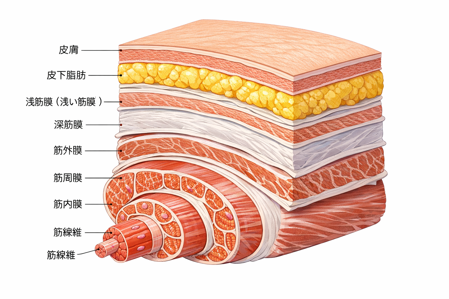 筋肉ではなく筋膜と脂肪組織の滑走障害