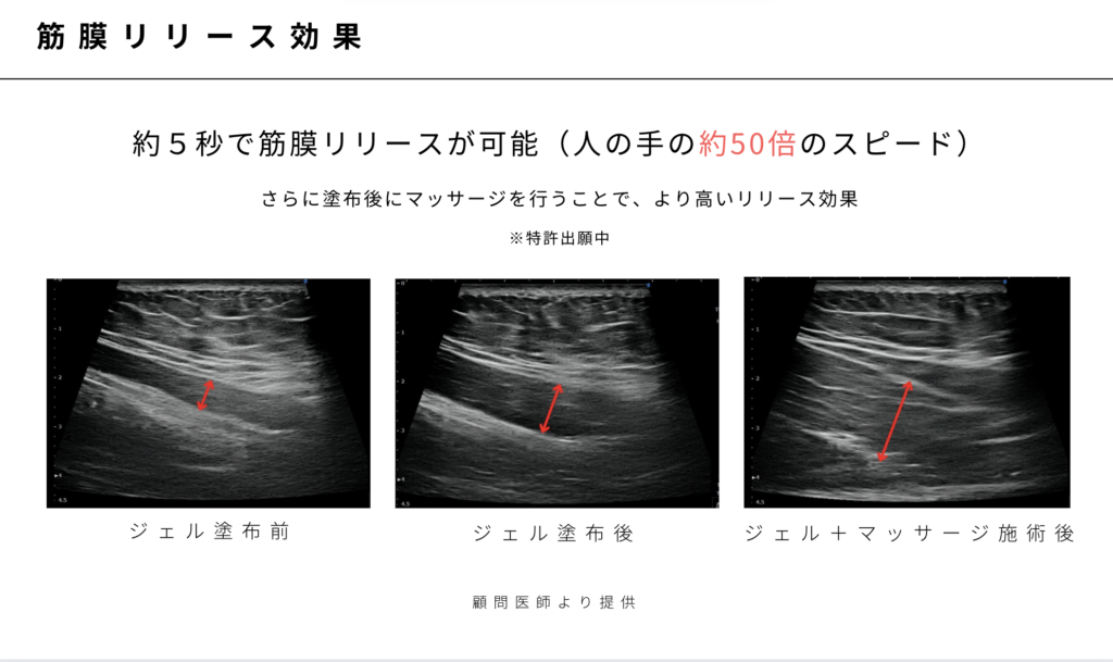 数秒で筋膜が緩む作用が顧問医師の実験で示されています。